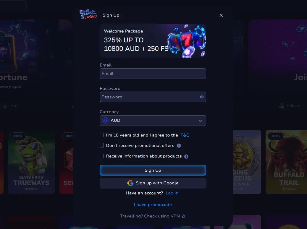 Getting started at 7Bit Casino Australia is quick and beginner-friendly. The registration process usually takes less than a minute, and you can do everything from desktop or mobile without downloading anything.