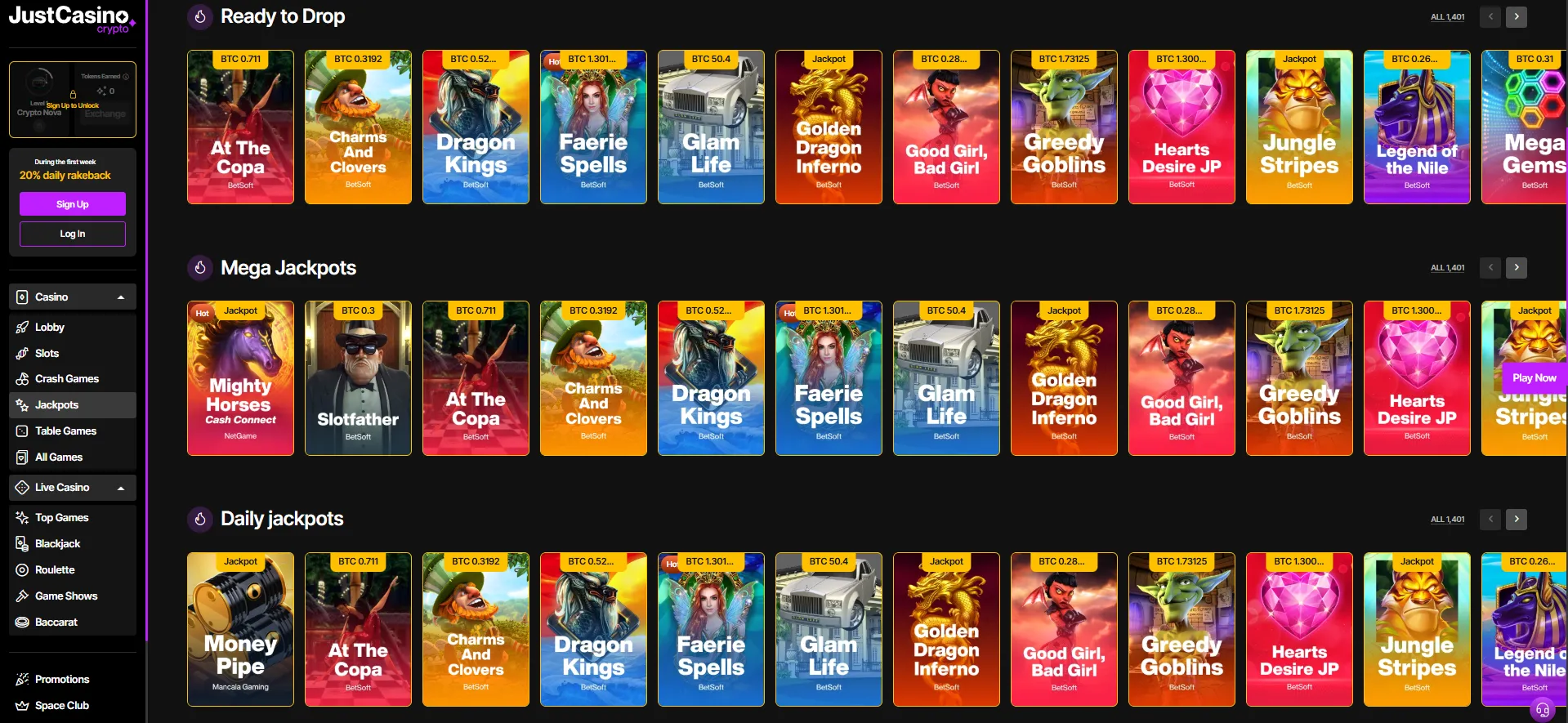 JustCasino allows Australian players to use crypto for fast and secure deposits. With Bitcoin and other cryptocurrencies, users can enjoy quick transactions, added privacy, and fewer banking restrictions when playing online.