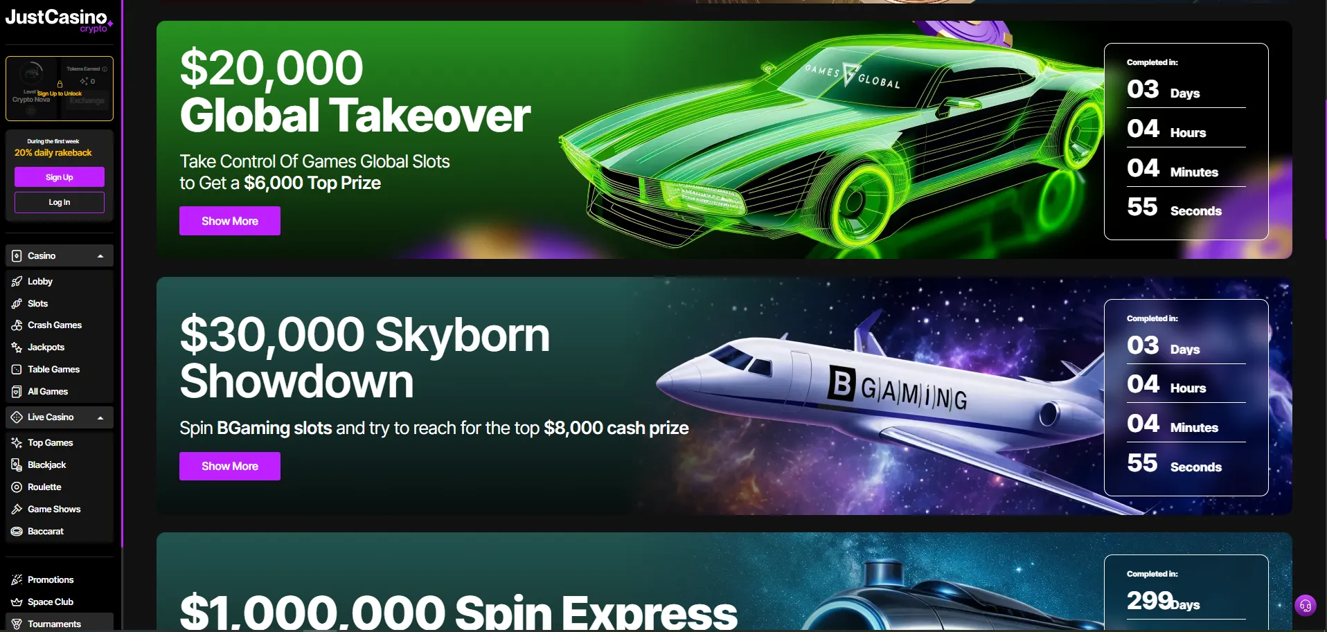Get 20% cashback on the house edge for all real-money bets during your first 7 days. Deposit at least $20 (USD or crypto) to claim daily, no hidden terms.