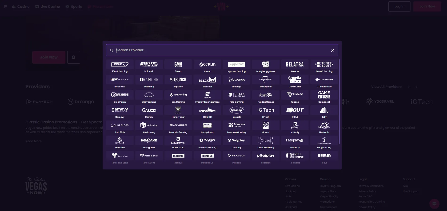Games at Vegas Now Casino for Aussie Players
